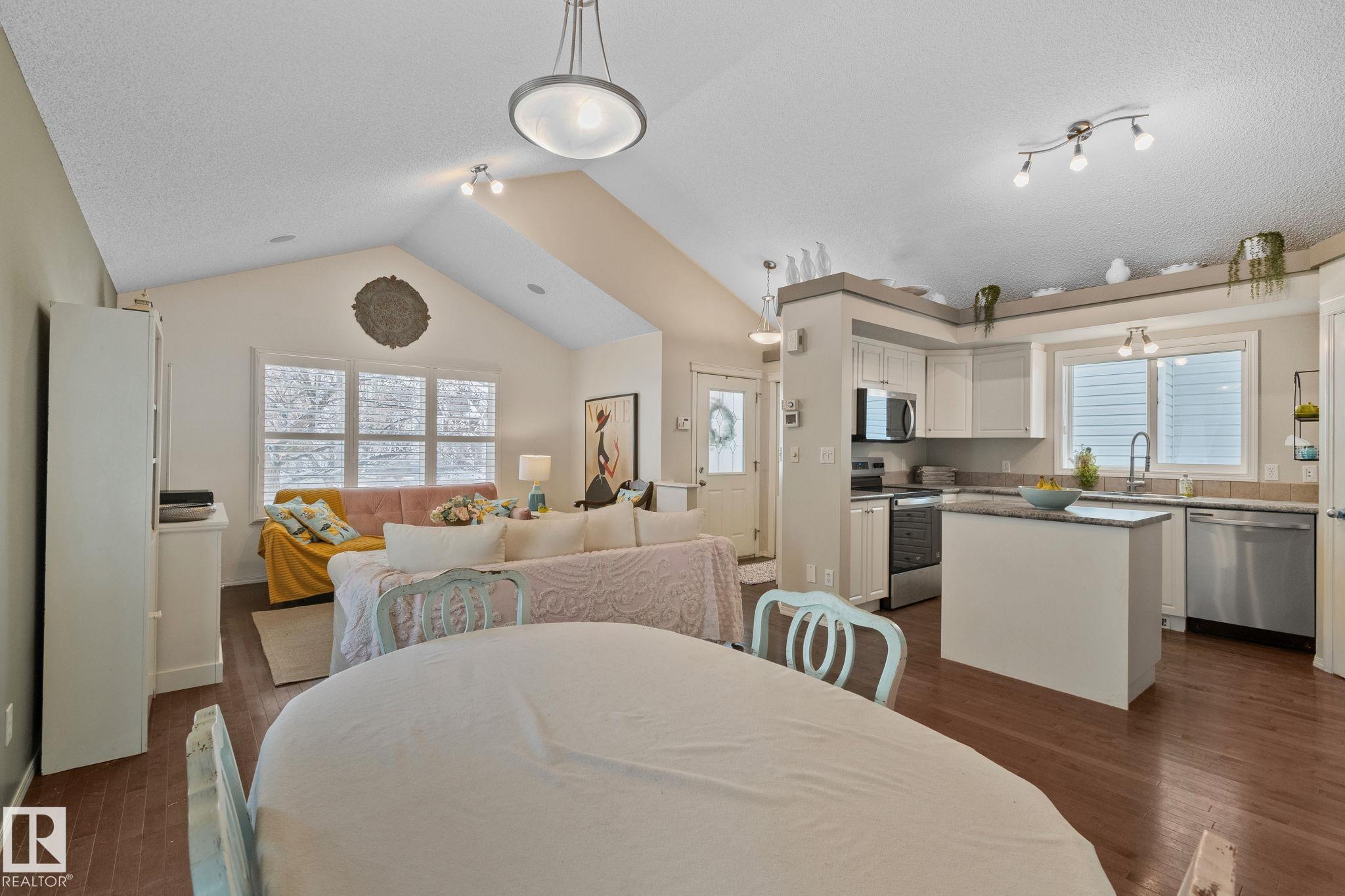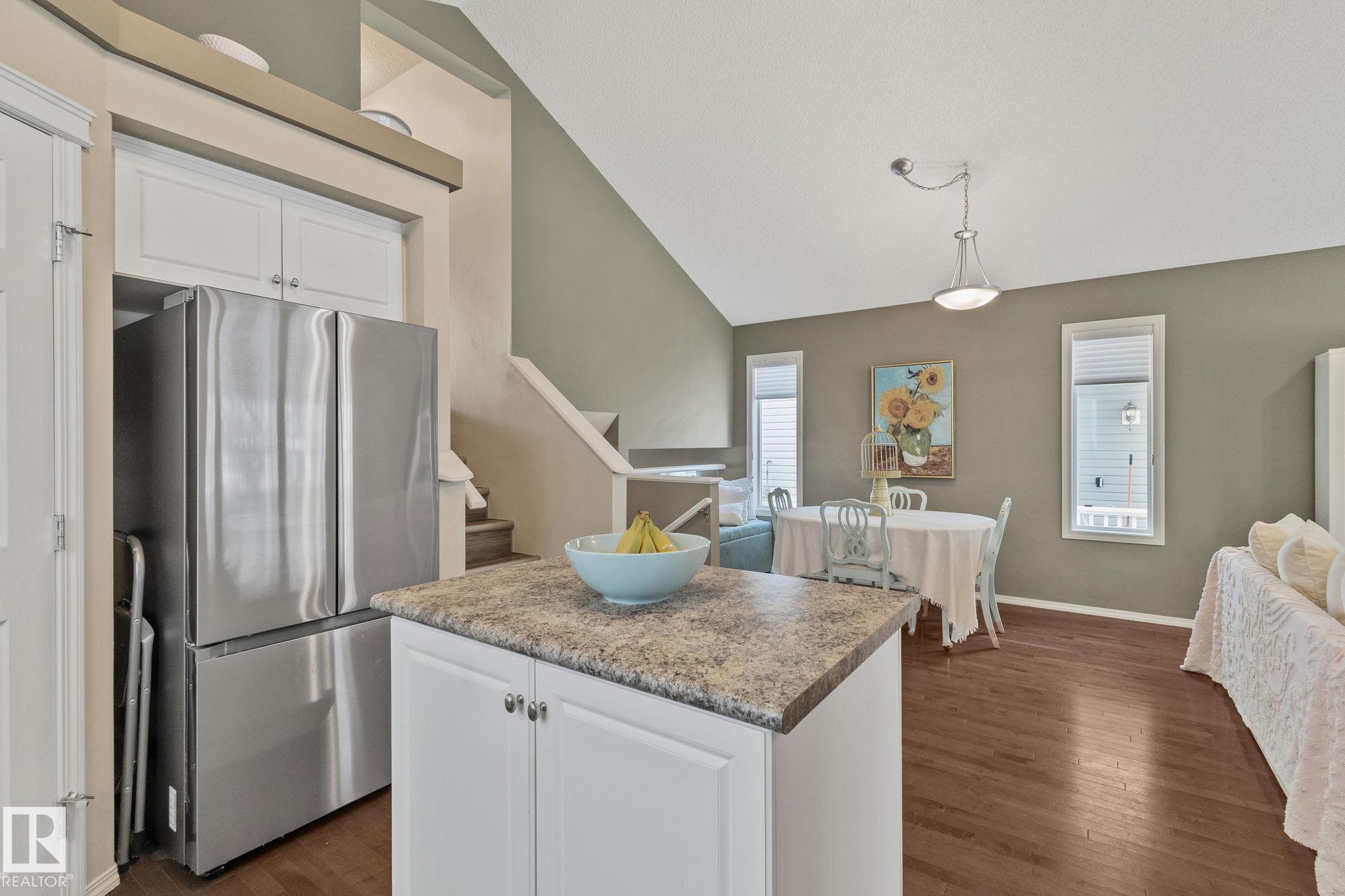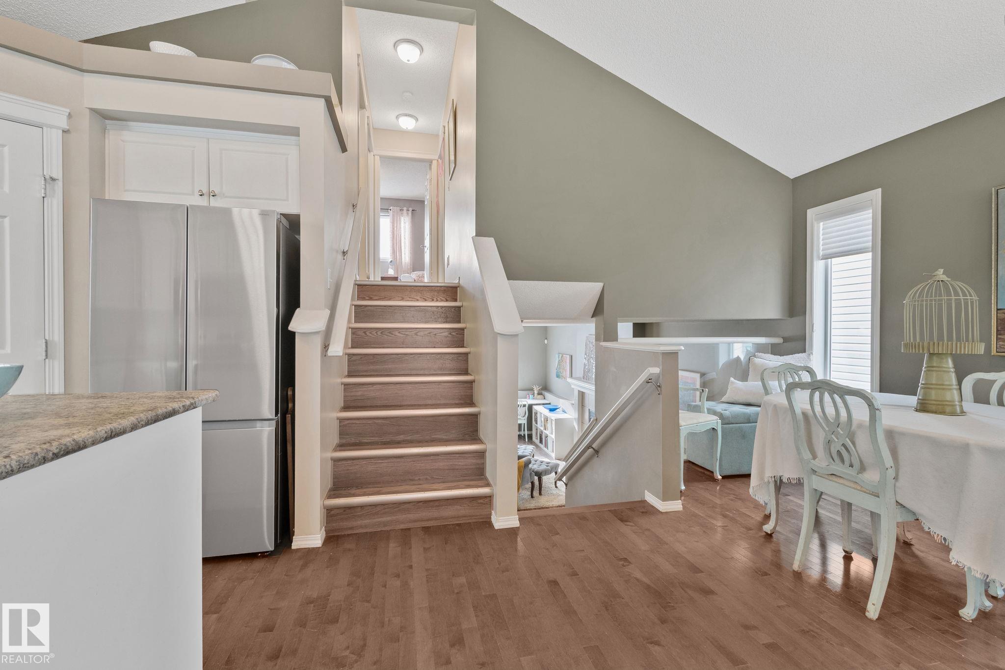 Fully finished 4 bed 3 bath home in the highly sought-after community of Summerside, Edmonton. The main living space features a bright vaulted ceiling w/open layout & custom vinyl & Hunter Douglas window coverings throughout. Freshly painted frnt entry and kitchen. Kitchen equipped with brand new S/S appliances 2026. Upper floor has primary with w/i closet w/ensuite & updated large w/i shower, 2nd bedroom and full bath. Lower level family room feats. cozy gas fireplace, 3rd bedroom, laundry w/newer 2022 washer/dryer, full bath and access to backyard. Basement has 4th bed/rec room & w/i closet. Newer 2019 high effit furnace and hot water on demand. A/C. Double detached garage with back lane. Sump tied into city sewer. Enjoy the convenience of being just a 10-minute walk to the private community beach at Lake Summerside, where you?ll have access to year-round amenities including boat rentals, pickleball/tennis courts, beach volleyball, a putting green, skating in the winter, and multiple playgrounds.