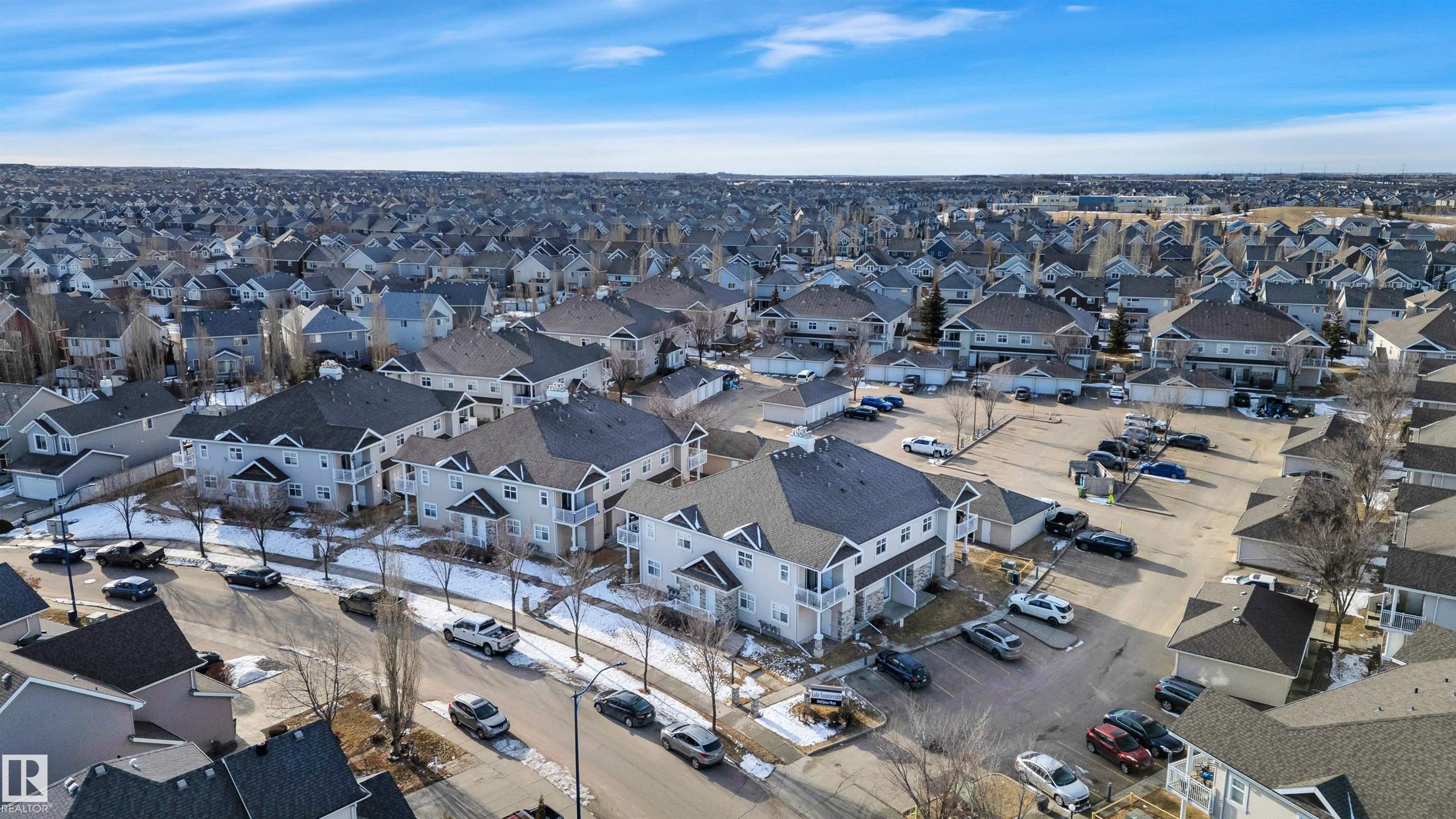 Welcome to the sought-after community of Lake Summerside, where this 2-Bedroom, single-level, upper unit Carriage Home w/ rare, single Garage/tandem stall parking, offers access to an incredible, amenity-rich lifestyle! Enjoy the spacious, open-concept main living area that can be designed to suit your needs. Boasting large windows, inviting so much natural light, 9' ceilings, beautiful, modern, vinyl plank flooring from the entrance up & throughout the main living area. Step out the patio doors off the living room & enjoy the covered balcony, equipped w/ gas line for all season BBQ's, plus, handy closed storage. Good-sized bedrooms & luxury of In-Suite Laundry. New Hot H20 tank (2025). Convenient & generous visitor parking & ample street parking. Pet Friendly Condo. As a resident of Lake Summerside, enjoy exclusive access to the 32-acre lake & year-round activities. 7 min walk to the lake. Community features walking trails, parks, & a clubhouse for social events & rec programs. Schools & Shopping nearby