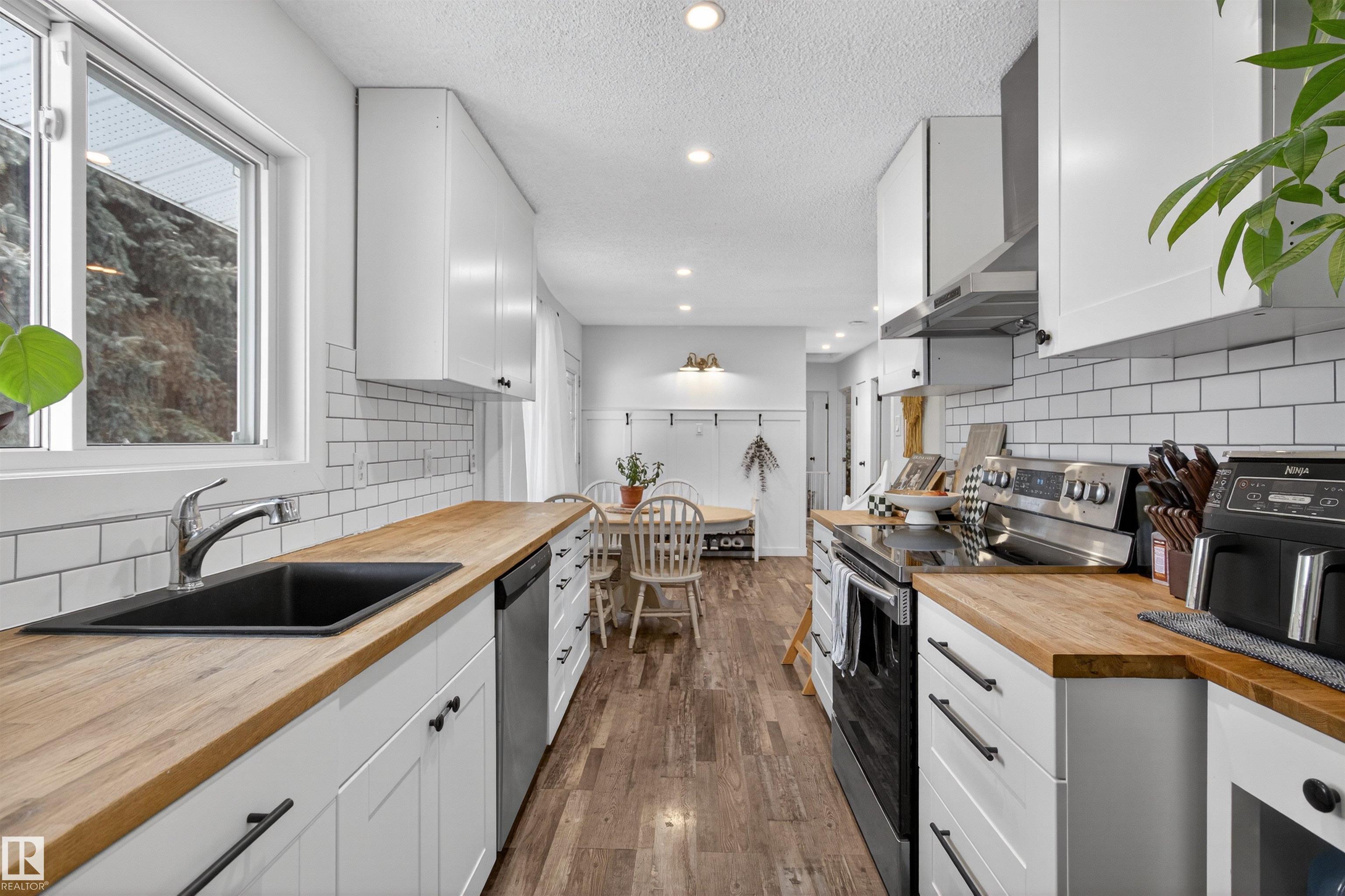 Located in the heart of Sherwood Park is this BEAUTIFULLY UPGRADED BUNGALOW plus an AWESOME DETACHED GARAGE/SHOP and newly poured driveway! ~ OVER $100K IN RENOVATIONS ~ A perfect home for CAR & HOBBY ENTHUSIASTS and those looking for a modern home. Very open design with vinyl plank flooring, large windows and lots of natural light. Lovely kitchen with newer countertops, stainless steel appliances and a generous dining area. Spacious living room, fireplace, 3 bedrooms on the main plus a beautiful 4 piece bathroom. Fantastic basement layout offering a large Rec room with wood-burning stove, 4th bedroom, 3 piece bathroom, storage area and laundry/utility room. Enjoy the treed and PRIVATE SOUTH-FACING BACKYARD with firepit and covered patio. NEW SHINGLES, WINDOWS, & a FINISHED & HEATED SHOP/DETACHED GARAGE with epoxy flooring. Single attached garage as well. Walking distance to grocery shopping, schools, transit and other great amenities! See it today! Visit REALTOR® website for more information.