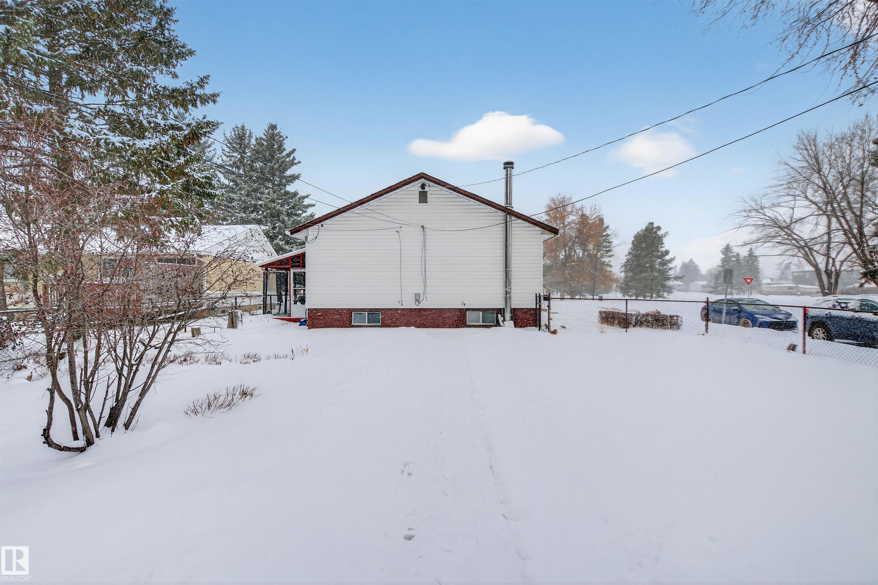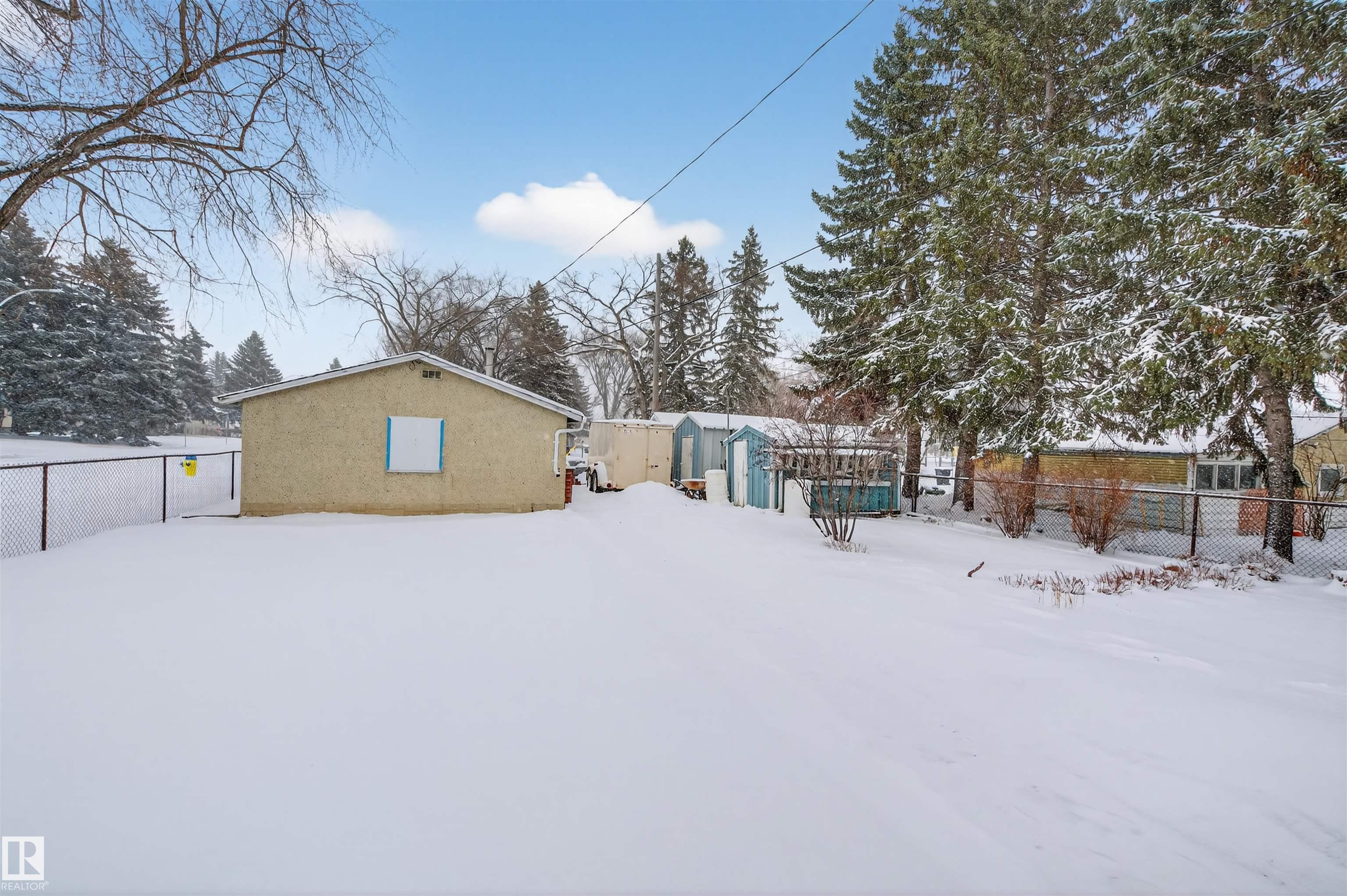 PRIME OPPORTUNITY in BRITANNIA YOUNGSTOWN! Situated on a LARGE CORNER LOT, this property offers incredible VALUE in one of Edmonton?s most CONVENIENT and EVOLVING WEST-END COMMUNITIES. Backing directly onto the COMMUNITY LEAGUE and located ACROSS FROM DR. ANNE ANDERSON PARK, you?ll love the OPEN SPACE, MATURE TREES, and STRONG SENSE OF COMMUNITY this location provides. Improvements include new shingles in 2022 and newer updated windows. The MASSIVE BACKYARD offers endless potential for outdoor living, redevelopment, or future expansion, complete with a DOUBLE DETACHED GARAGE and rear lane access. Inside, this well cared for home features a functional layout with additional living space in the basement. Just MINUTES TO DOWNTOWN with EASY ACCESS to MAJOR ROUTES, TRANSIT, SHOPPING, and SCHOOLS. Whether you?re looking to INVEST, REDEVELOP, or settle into a WELL-LOCATED MATURE NEIGHBOURHOOD, this property checks all the boxes. A RARE FIND with LOCATION, LOT, and LONG-TERM POTENTIAL!