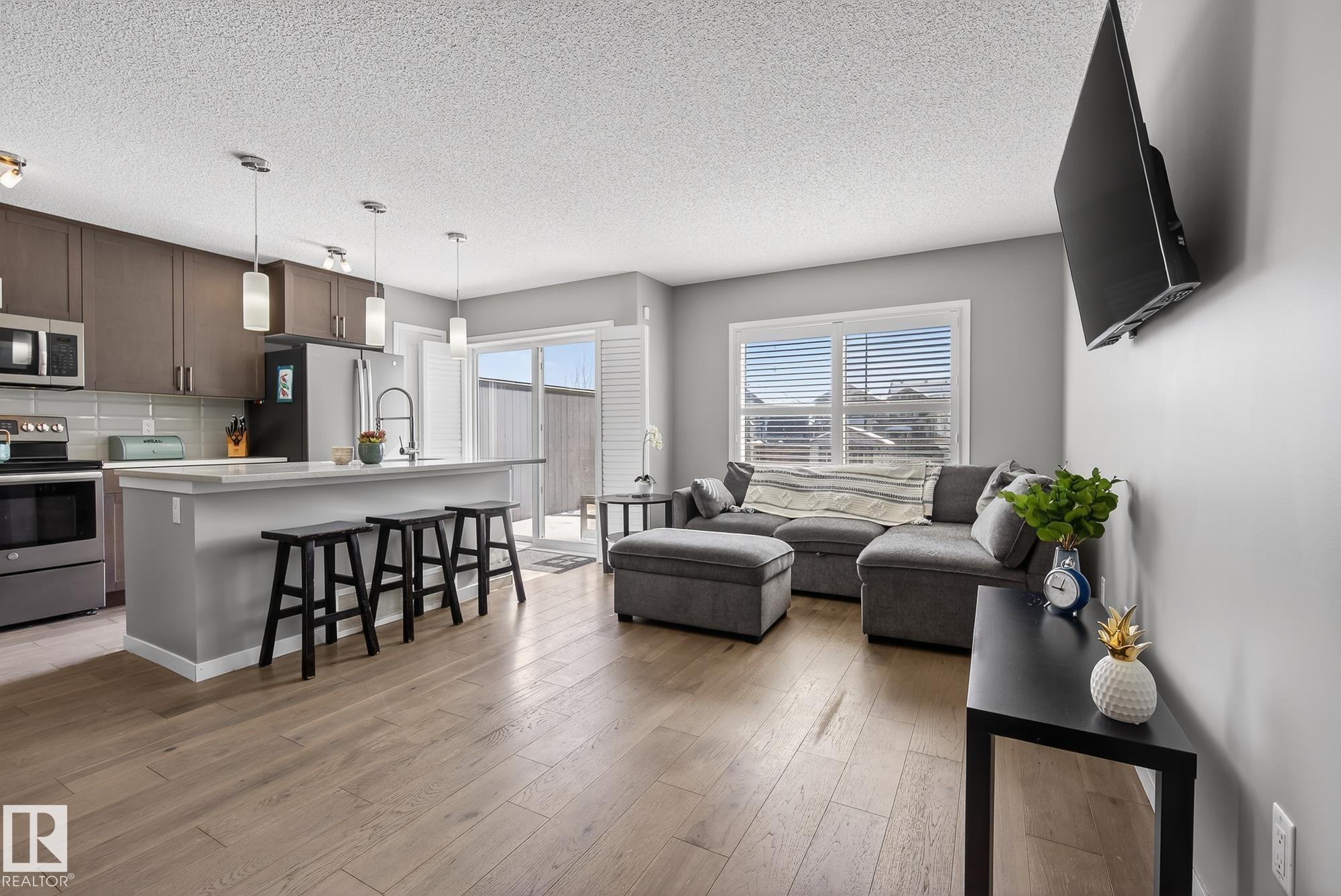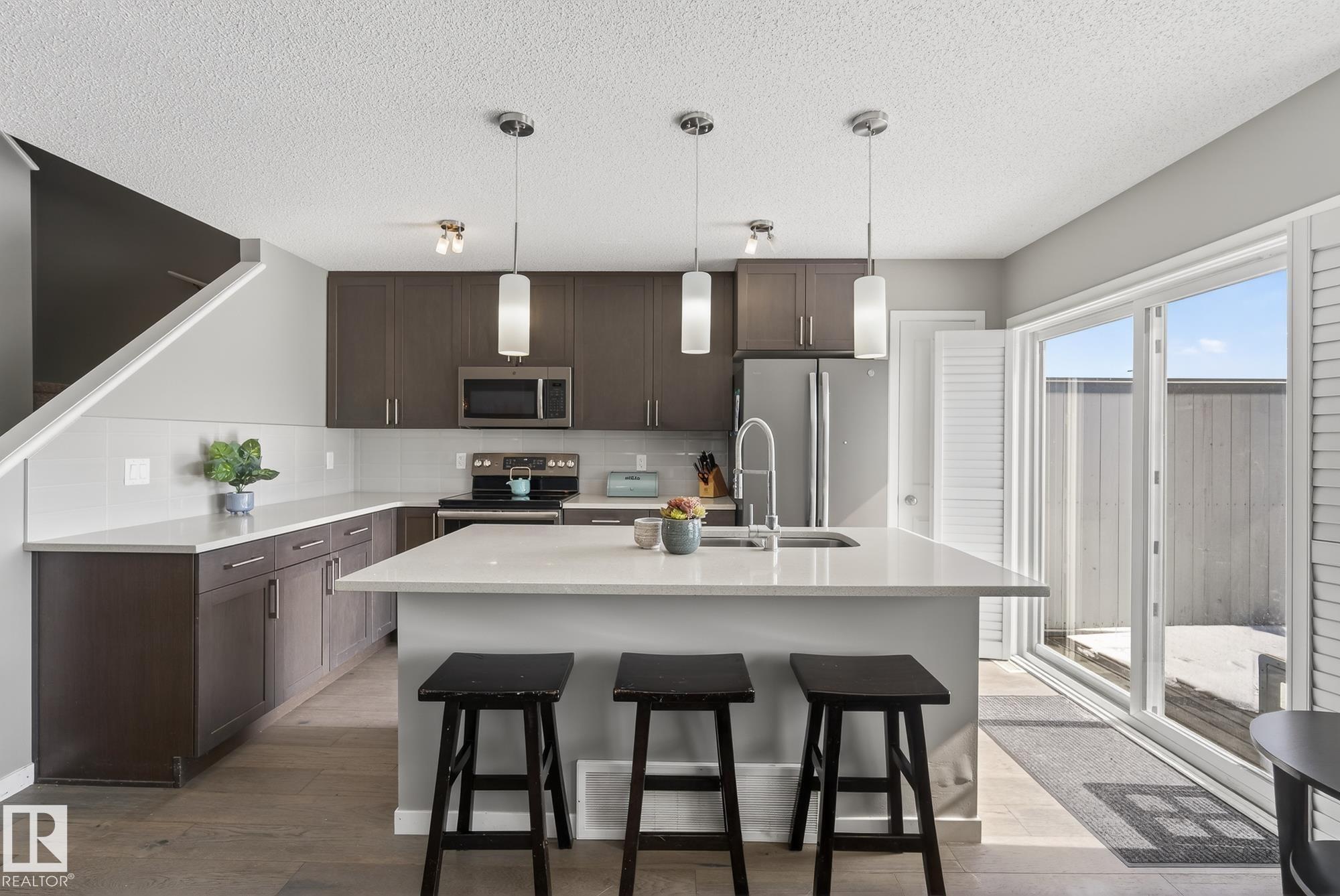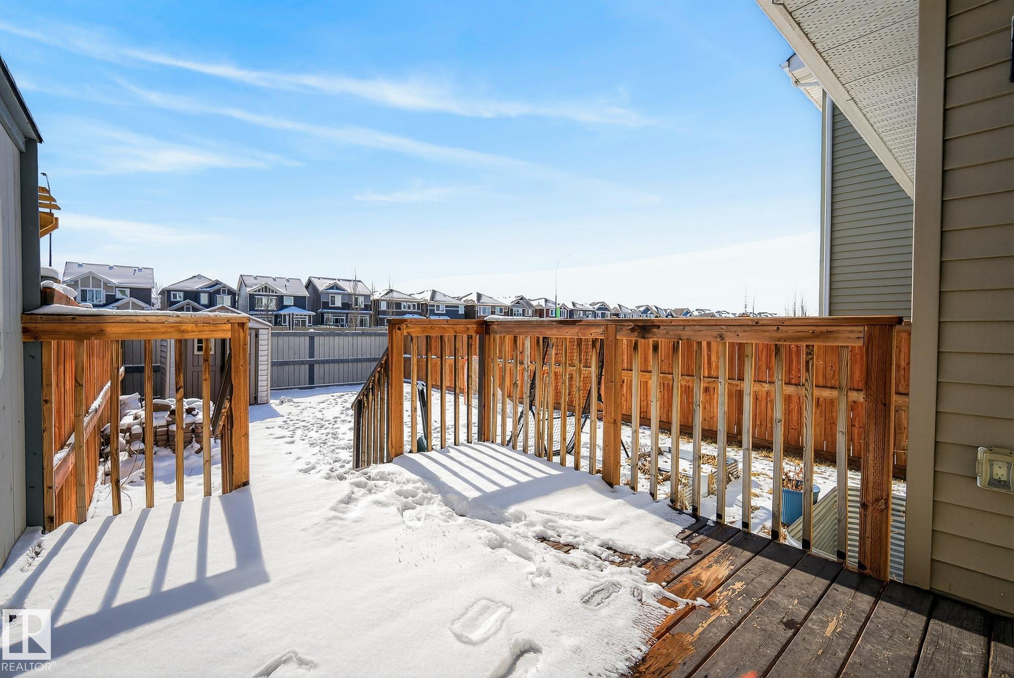 Welcome to Lake Summerside... Where everyday living feels like a vacation! Enjoy exclusive access to a 32-acre freshwater lake, private beach club, and a true sandy beach in this sought-after, resort-style community. This 1,423 sq. ft. home is move in ready and just steps away from Strembitsky School AND Summerside park! The open-concept main floor is designed for both entertaining and everyday comfort, featuring a stunning island kitchen with quartz countertops, full-height cabinetry, tile backsplash, and pantry. The dining and living areas are filled with natural light thanks to oversized windows with custom shutters. Upstairs, you?ll find three generously sized bedrooms, including a spacious primary retreat with a walk-in closet and ensuite, plus a full main bath and convenient upper-floor laundry. Complete with hardwood and tile flooring, five appliances, front and back landscaping, and a deck. Welcome home family!
