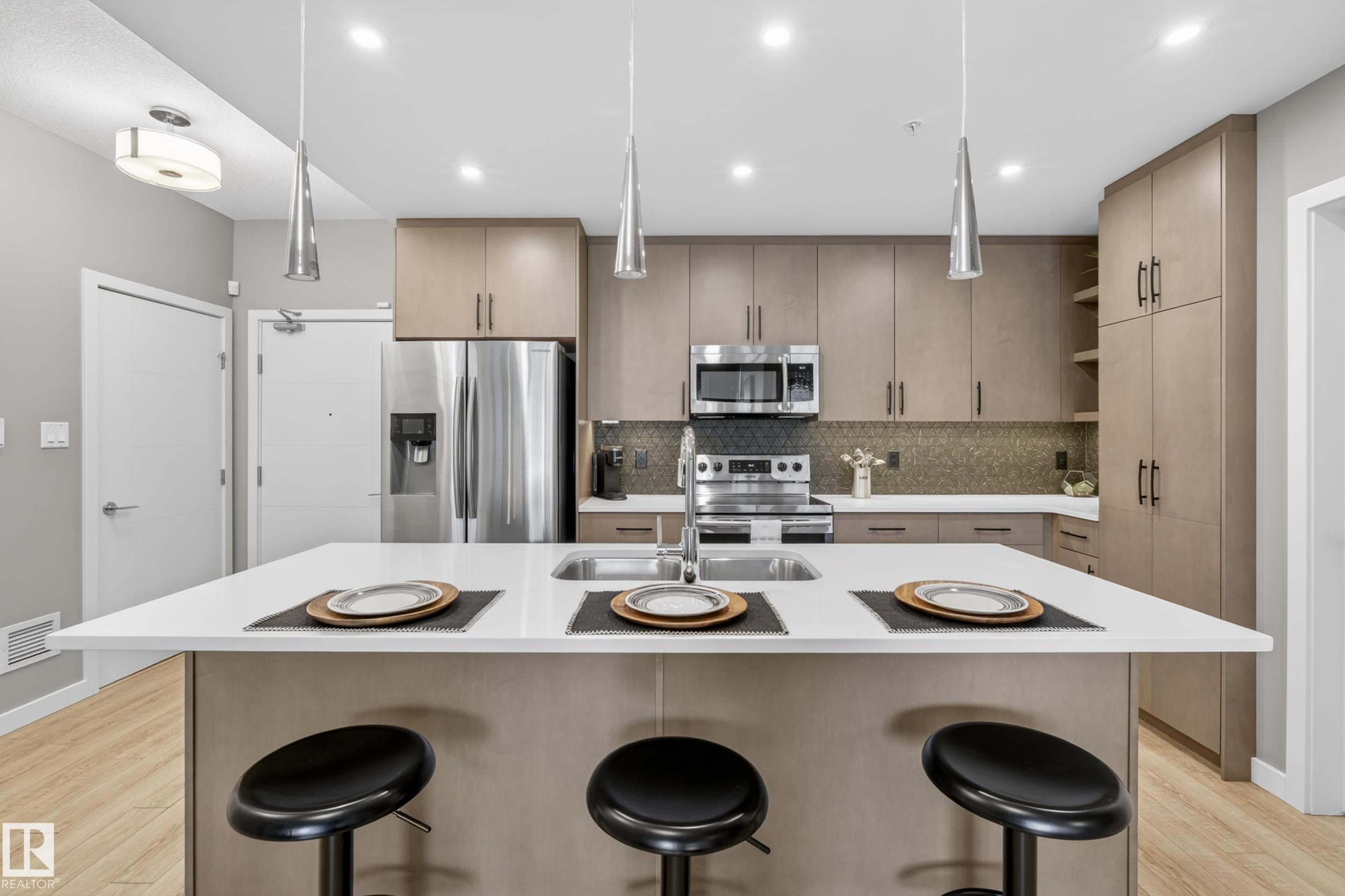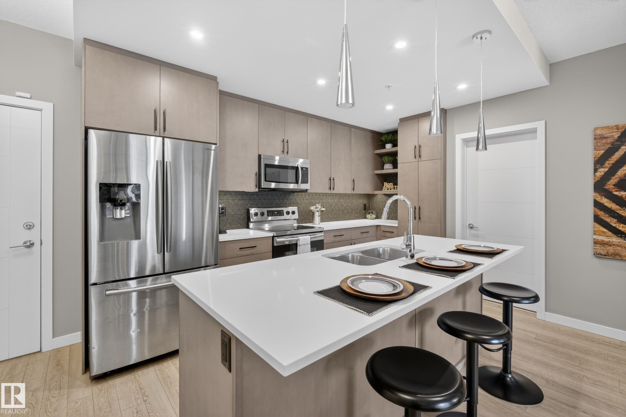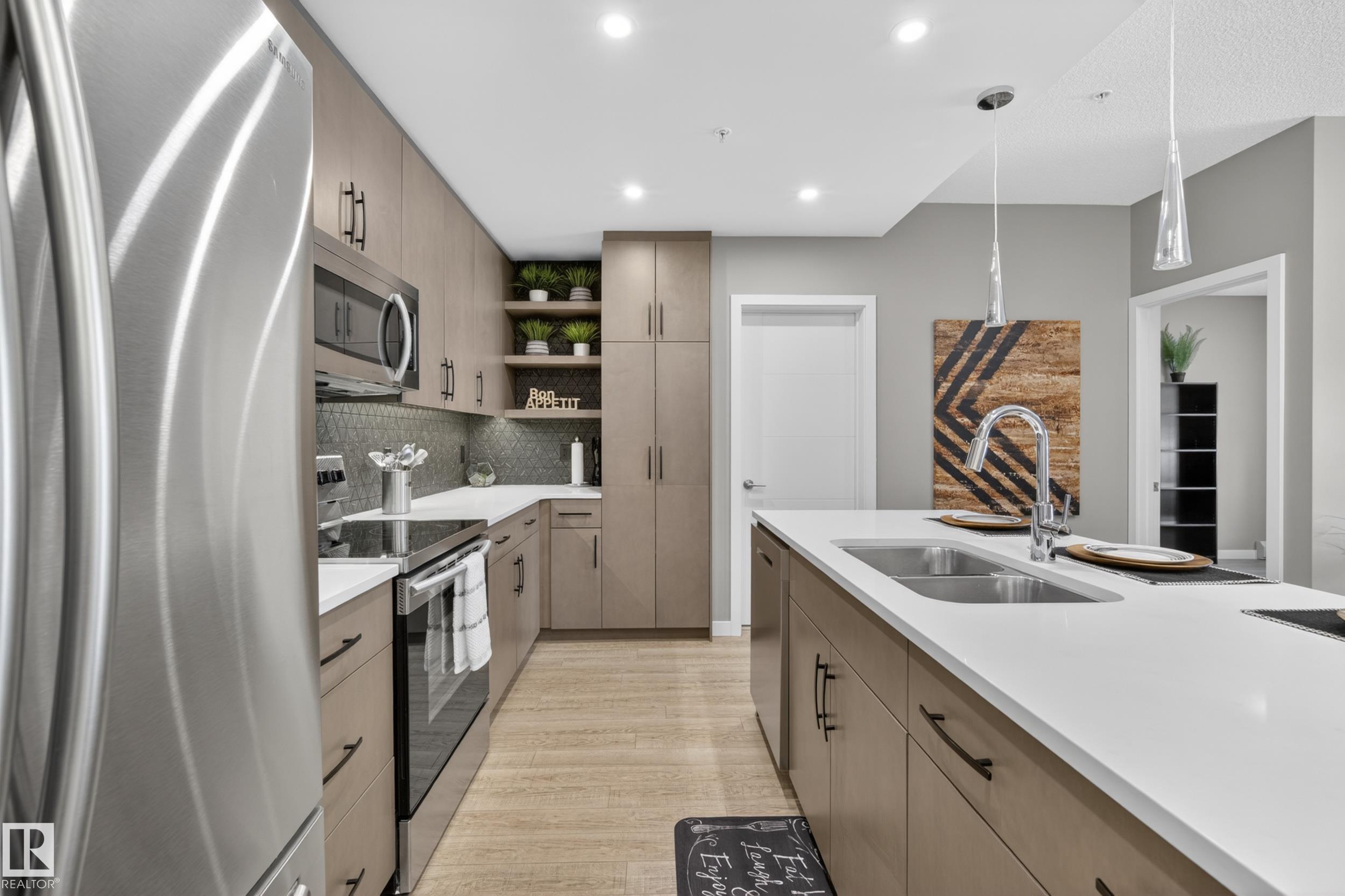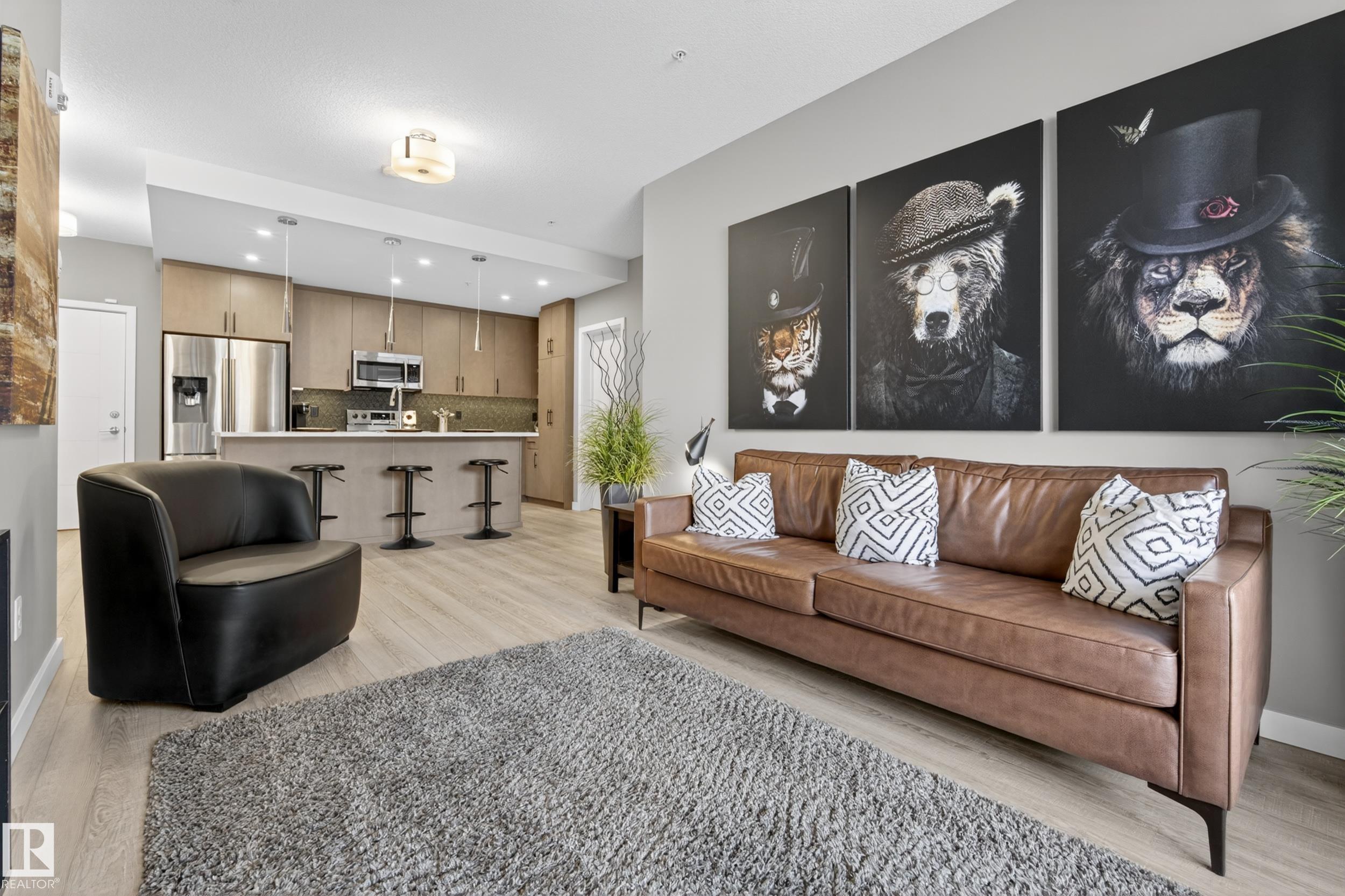 Welcome to this FULLY FURNISHED, modern 2-bedroom, 2-bathroom condo in the desirable community of Allard. Offering a bright open-concept layout with 9? ceilings, this home features a stylish kitchen complete with quartz countertops, sleek cabinetry, and stainless steel appliances. The spacious living area is perfect for everyday living and entertaining, with access to a private balcony to relax and unwind. The primary bedroom includes a walk-in closet and 3-piece ensuite, while the second bedroom is ideal for guests, a home office, or additional living space. Enjoy the convenience of in-suite laundry and a titled heated underground parking stall. Located just minutes from Blackmud Creek Ravine, shopping, restaurants, schools, and major commuter routes, including Anthony Henday and QE2, this property offers the perfect balance of comfort and accessibility. Ideal for first-time buyers, downsizers, or investors.