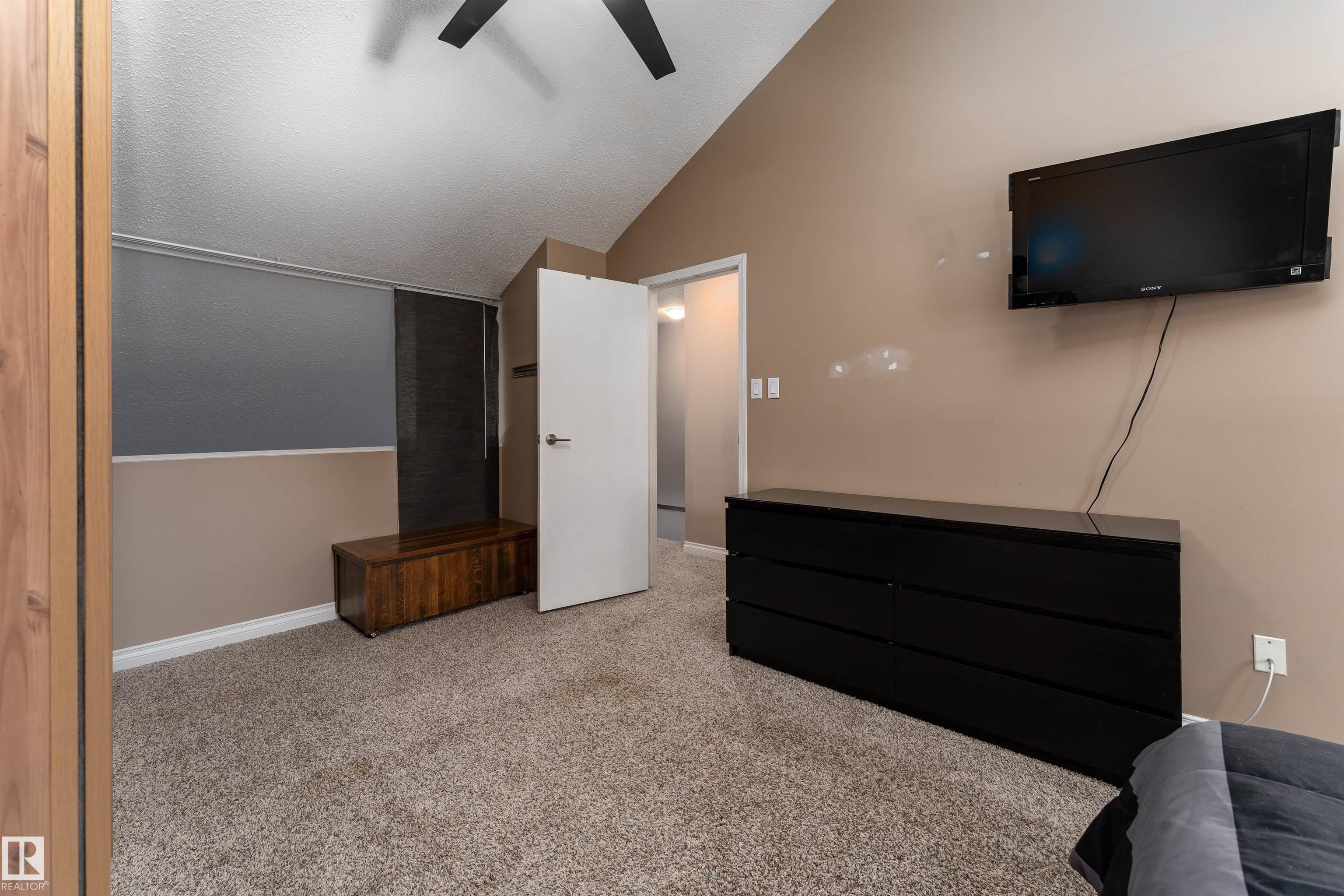 Stop searching and start packing because this uniquely designed 1,222 sq. ft. Hillview Crescent gem is the one you?ve been waiting for! The main floor features a grand living room with high vaulted ceilings and a cozy stone-surround wood fireplace. The modern kitchen is a dream. Designed with warm wood cabinetry, beautiful tile backsplash, dark counters, and a bright breakfast nook by the window. Hosting is a breeze in the large dining room, while neutral-toned flooring and a 2-pc bath complete the level. Upstairs, the open-to-below design enhances the space, leading to a massive primary suite with vaulted ceilings and an attached flex room, a second generous bedroom with cozy carpeting. The partially finished basement has a full bath, laundry room, and 3rd bedroom. Outside, enjoy the private deck and west-facing yard for afternoon sun. Complete with 2 assigned parking stalls, and close proximity to schools and shopping. Your perfect home awaits! (Furnace replaced in 2025).