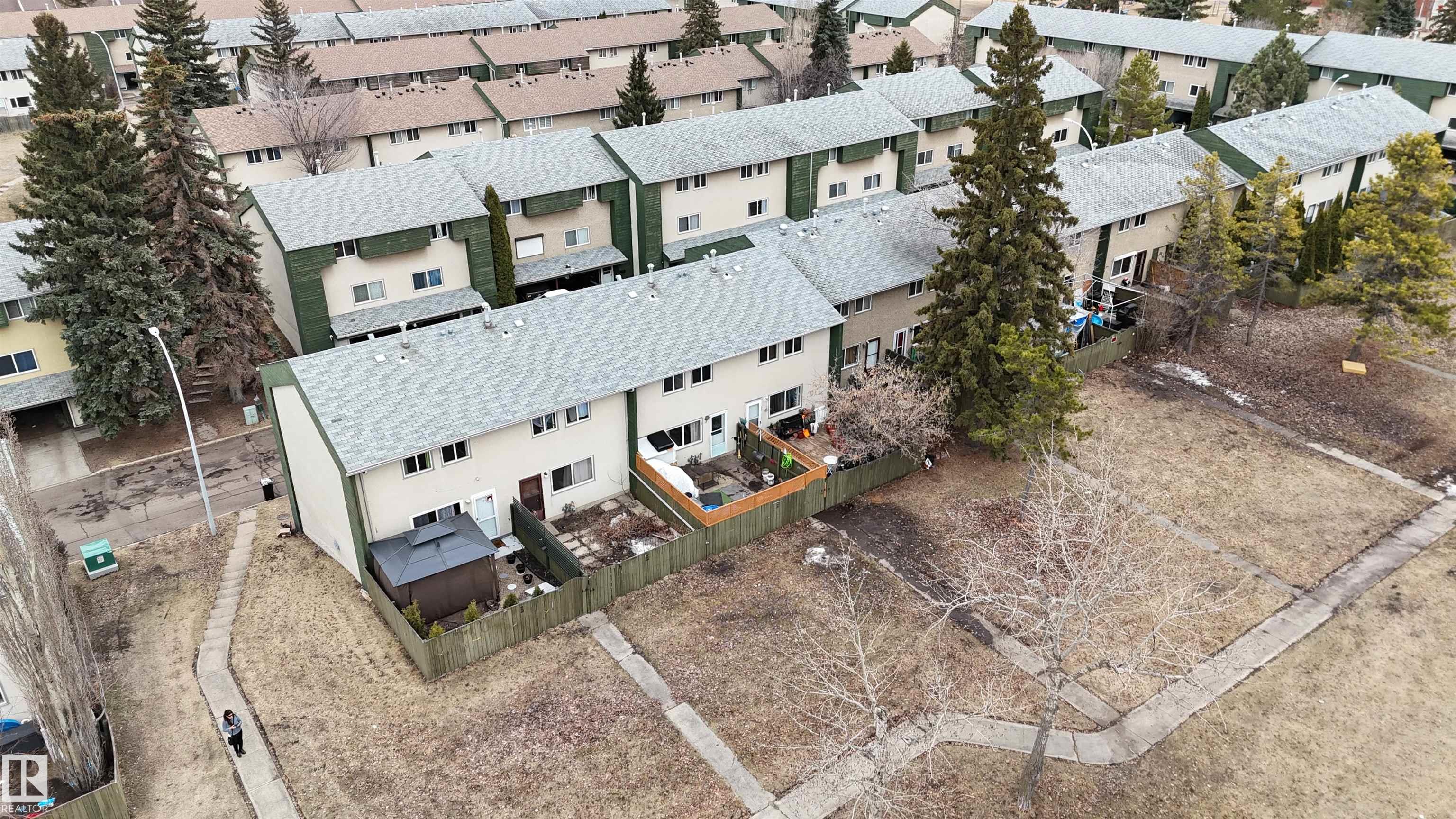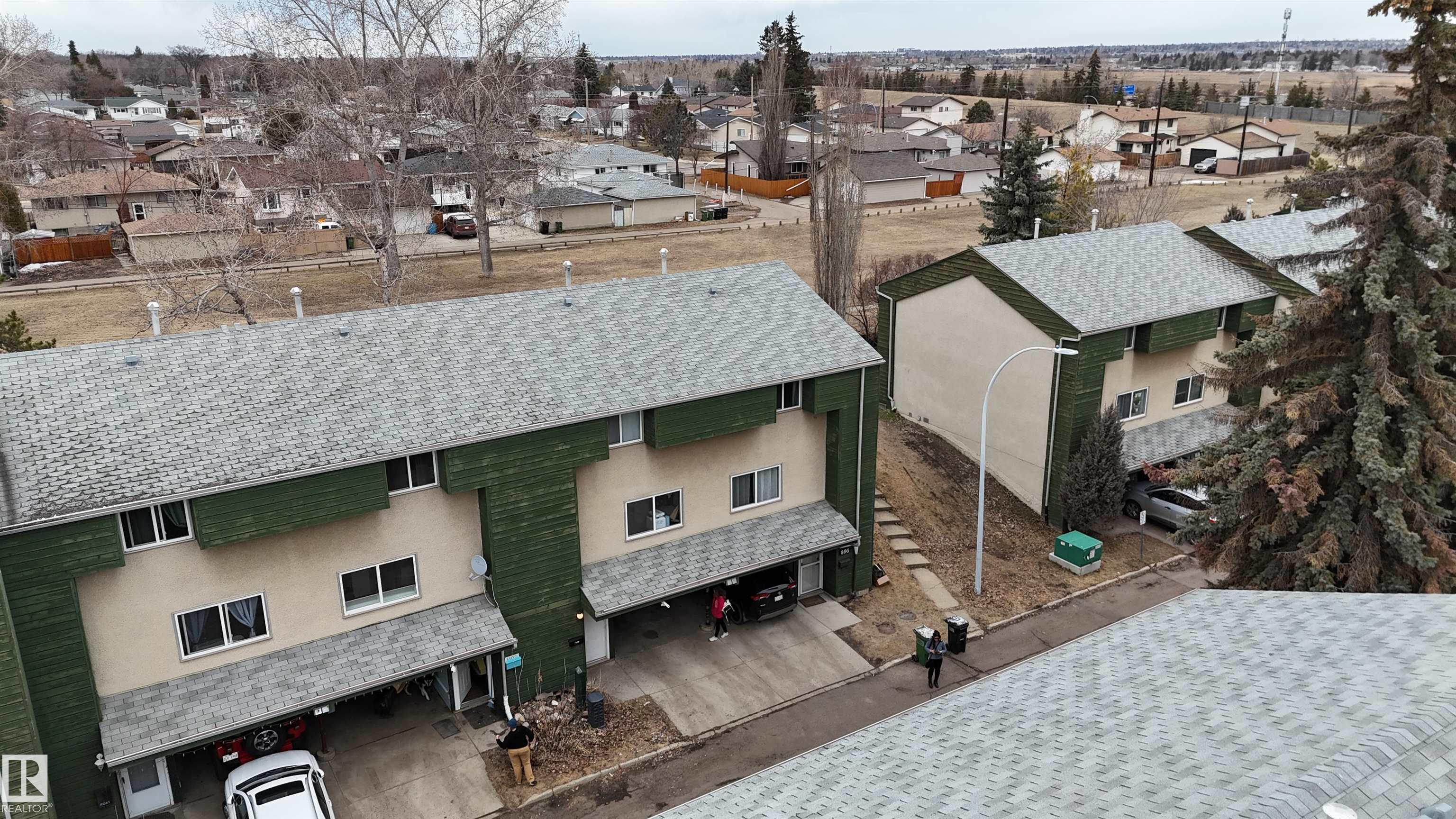 Affordable home ownership starts here! This 3-bedroom townhouse in family-friendly Abbottsfield backs onto green space and features a private fenced yard plus covered parking. Perfect for first-time buyers, families, or investors. Offering just over 1,000 sq ft, the main floor has durable tile and vinyl plank flooring, a bright functional layout, and a convenient 1/2 bath. Upstairs offers three bedrooms and a full bath, while the basement provides extra space for storage, recreation, or future development. Low condo fees under $200/month include professional management, landscaping, snow removal, and garbage collection. Located directly across from Abbott Elementary School with transit outside the complex, plus quick access to Yellowhead Trail and Anthony Henday Drive. Close to shopping, restaurants, and amenities. Great value in a convenient location!